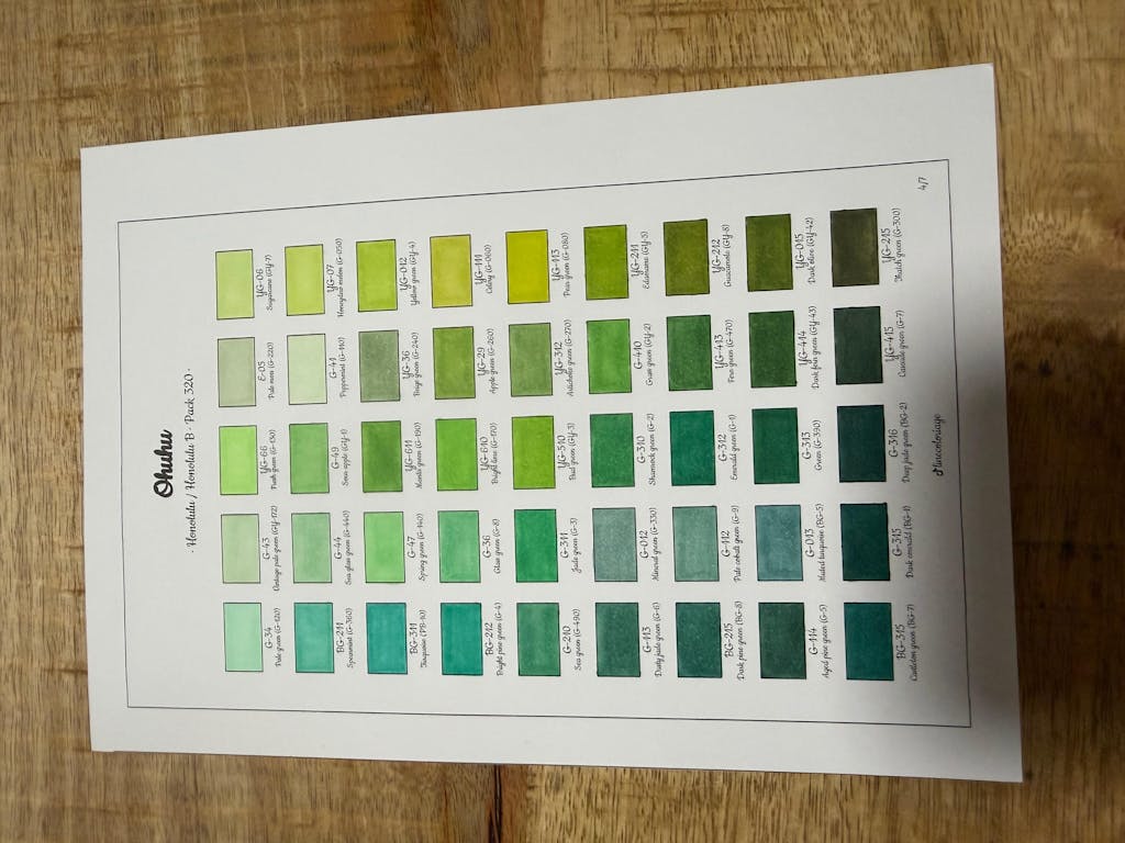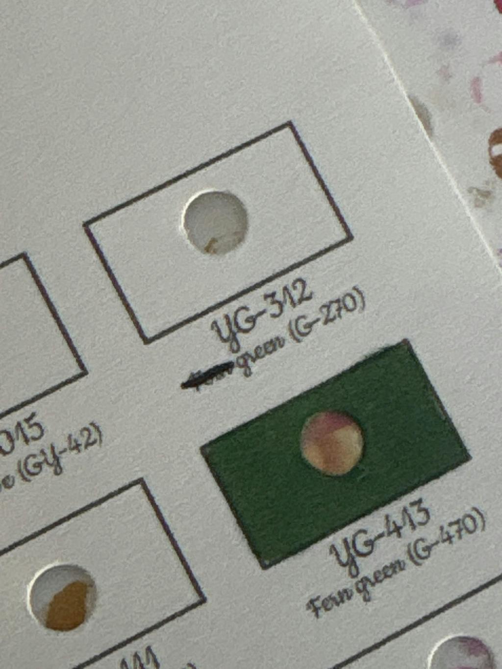 Beautiful sheets. But there’s a discrepancy with YG36 Beige Green, you have it as artichoke green. YG312 Artichoke green, you have as fern green.